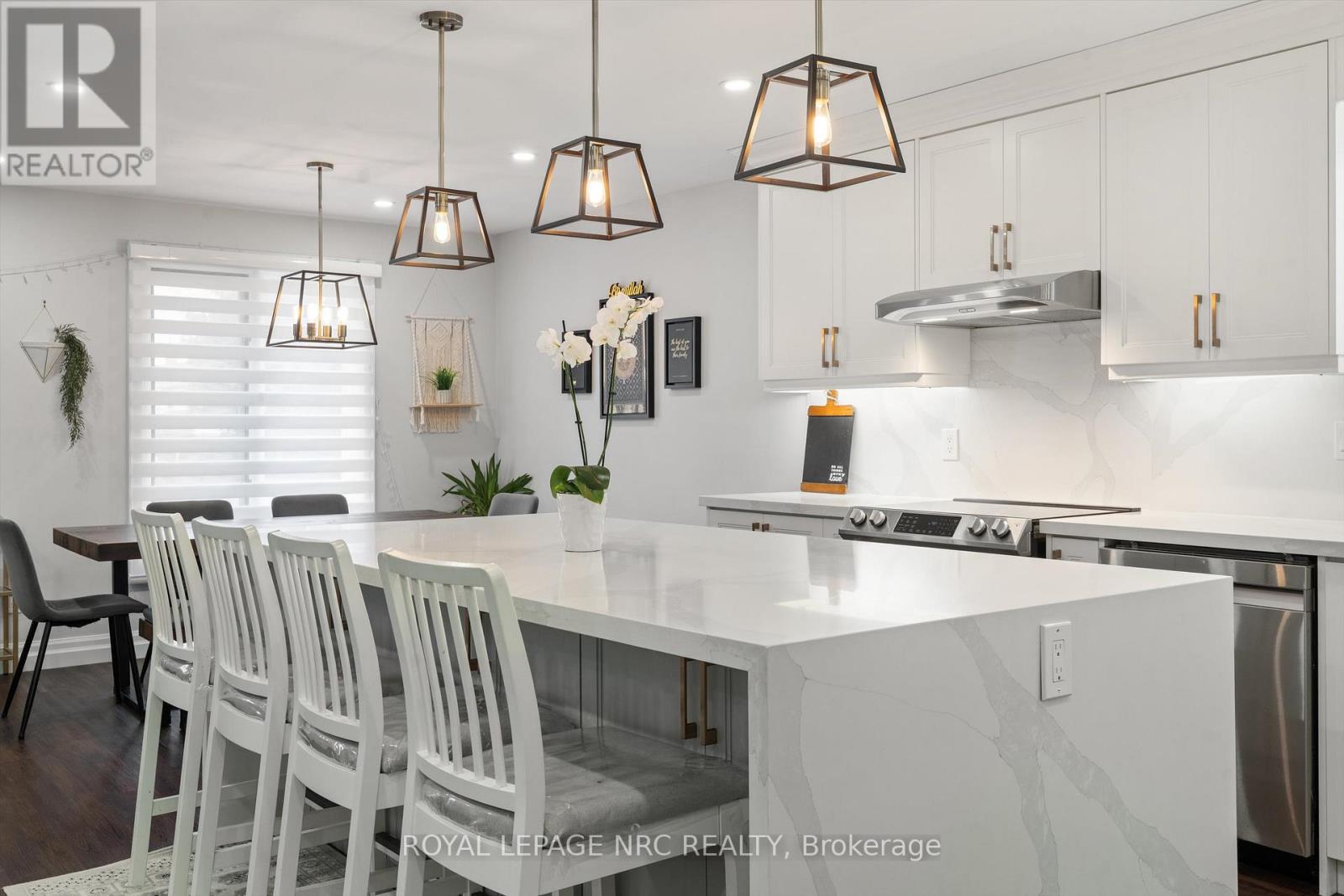 It's All Here! Everything on the wish list.....Fantastic neighbourhood, deep lot, 2nd suite plus stylish open concept layout. This bi-level home is updated throughout! Enter the spacious 17' x 6' foyer offering lots of room for coat & shoe storage, entrance to the garage & privacy for the main level from the front entrance. The open concept kitchen, living, dining room measures 24'4" x 22'4" & features a stunning white kitchen with Quartz counters, island with seating, gold coloured accents, deep sink, pantry cabinets & stainless steel appliances. Three bedrooms on the main floor and a renovated bathroom with double shower with glass doors, 2 sinks & black accents. The lower level features a huge kitchen with barn door that separates this area from the family room. A 4th bedroom plus an office with a gas fireplace and a laundry room with wood counter that can be easily removed to access the washer & dryer. This level has a separate outside entrance that makes it a practical choice for in-law accommodations with some separation. The completely fenced rear yard is 165 ft. deep and offers a tool shed, vegetable garden & patio with a screened in gazebo. Situated in a desirable school district, close to the hospital & SMART shopping district. Easy access to the QEW & Hwy 406. (id:6365)